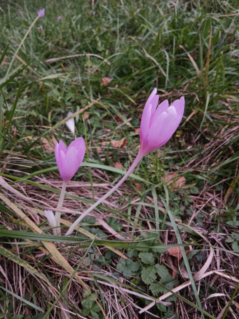 The blackthorn (Prunus spinosa) bushes are heavy with dark blue sloes, while the rosehips (Rosa canina) glow bright red along the path. Between them, among the mushrooms, Maiden pinks (Dianthus deltoides) still bloom—small yellow flowers of cinquefoil (Potentilla sp.) shine through, and the tall, pale seed heads of grasses catch the light. The maples (Acer sp.) are turning red.